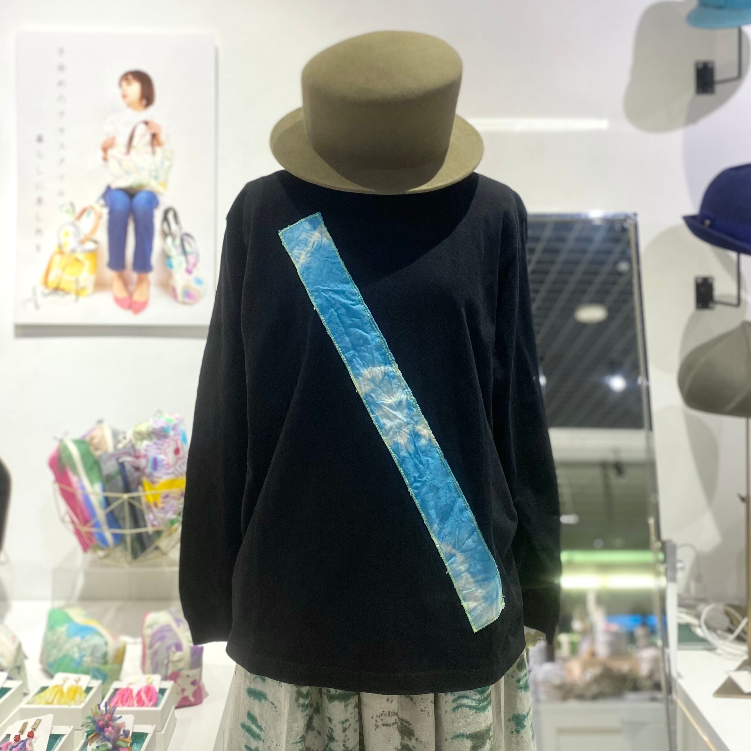 スタンダードな形のロンTに、手染めのテキスタイルをパッチワークした1点もの。こちらはSサイズです。