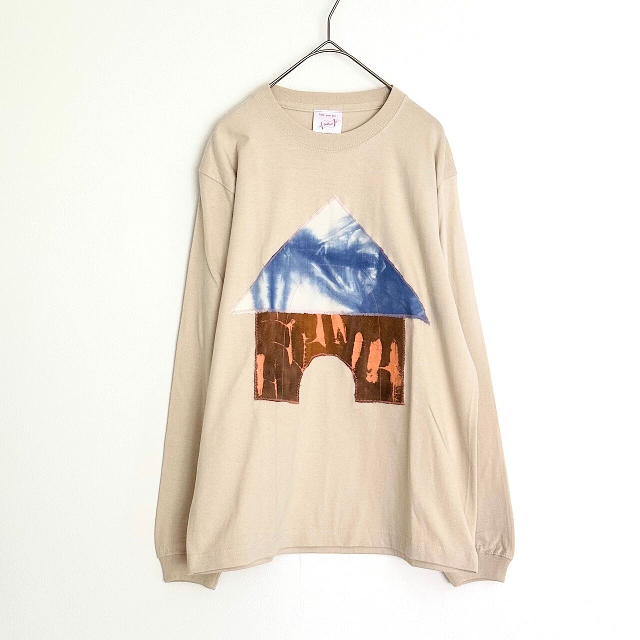 手染めコラージュの長袖Tシャツ / beige×house ユニセックスSサイズ