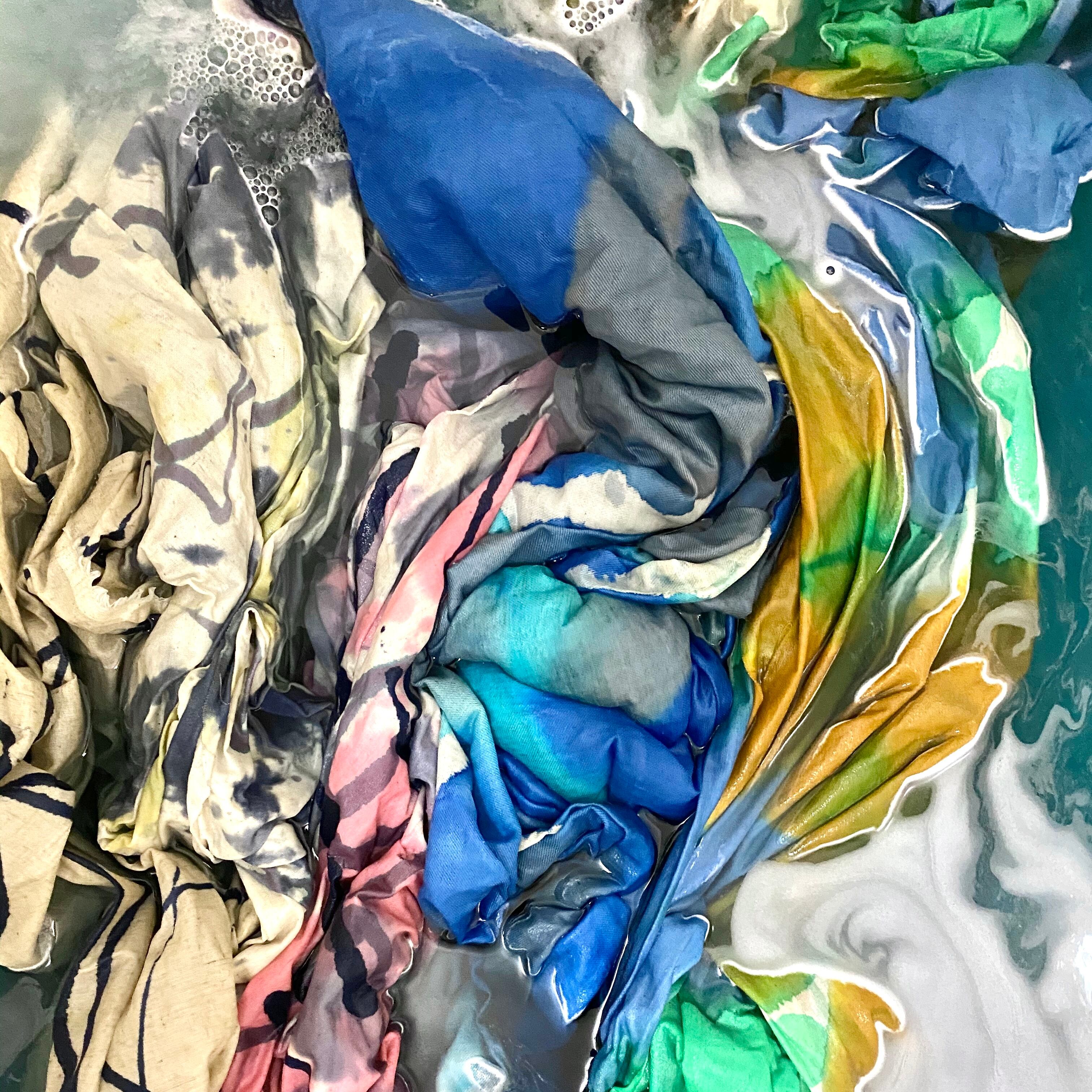 沢山の工程を経て、専用の染料で染めた生地は色落ちもしにくく