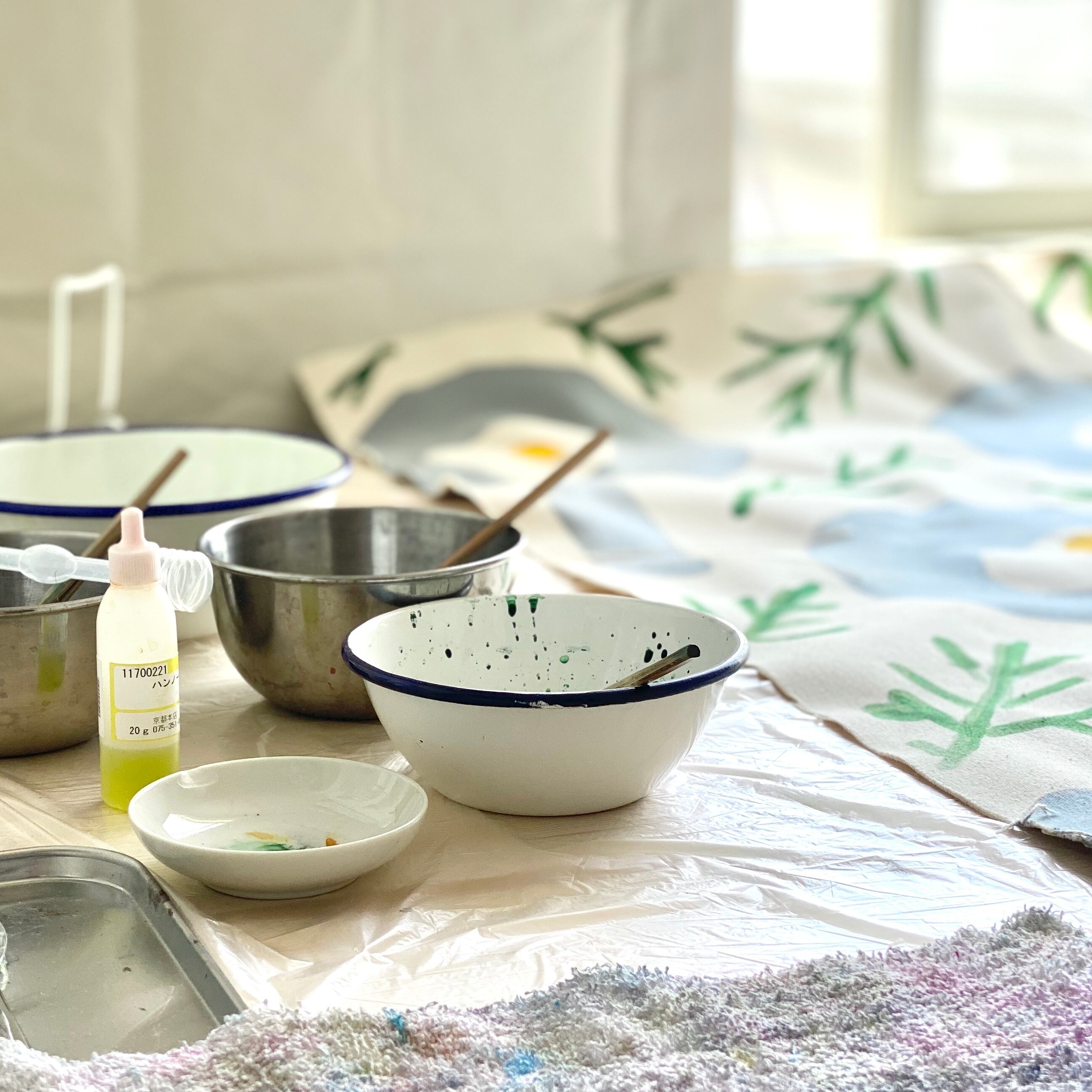 1枚1枚手染めで染色を施す、オリジナルテキスタイルのキャンバス巾着バッグです。