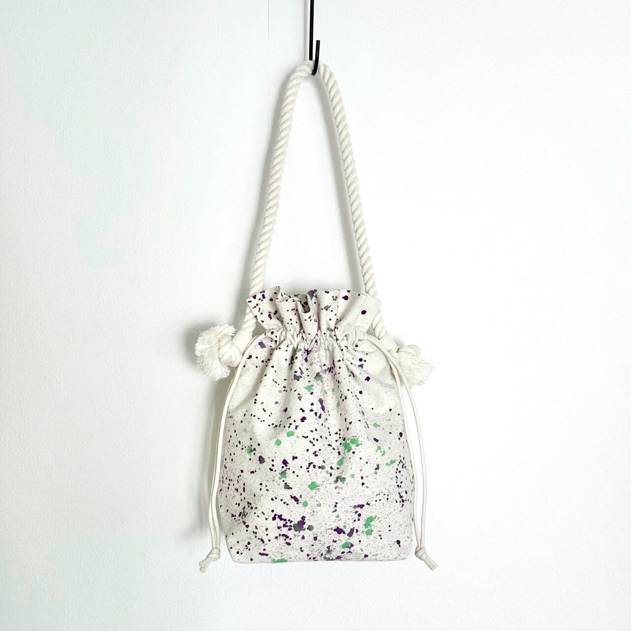 1枚1枚手染めで染色を施す、オリジナルテキスタイルのキャンバス巾着バッグです。