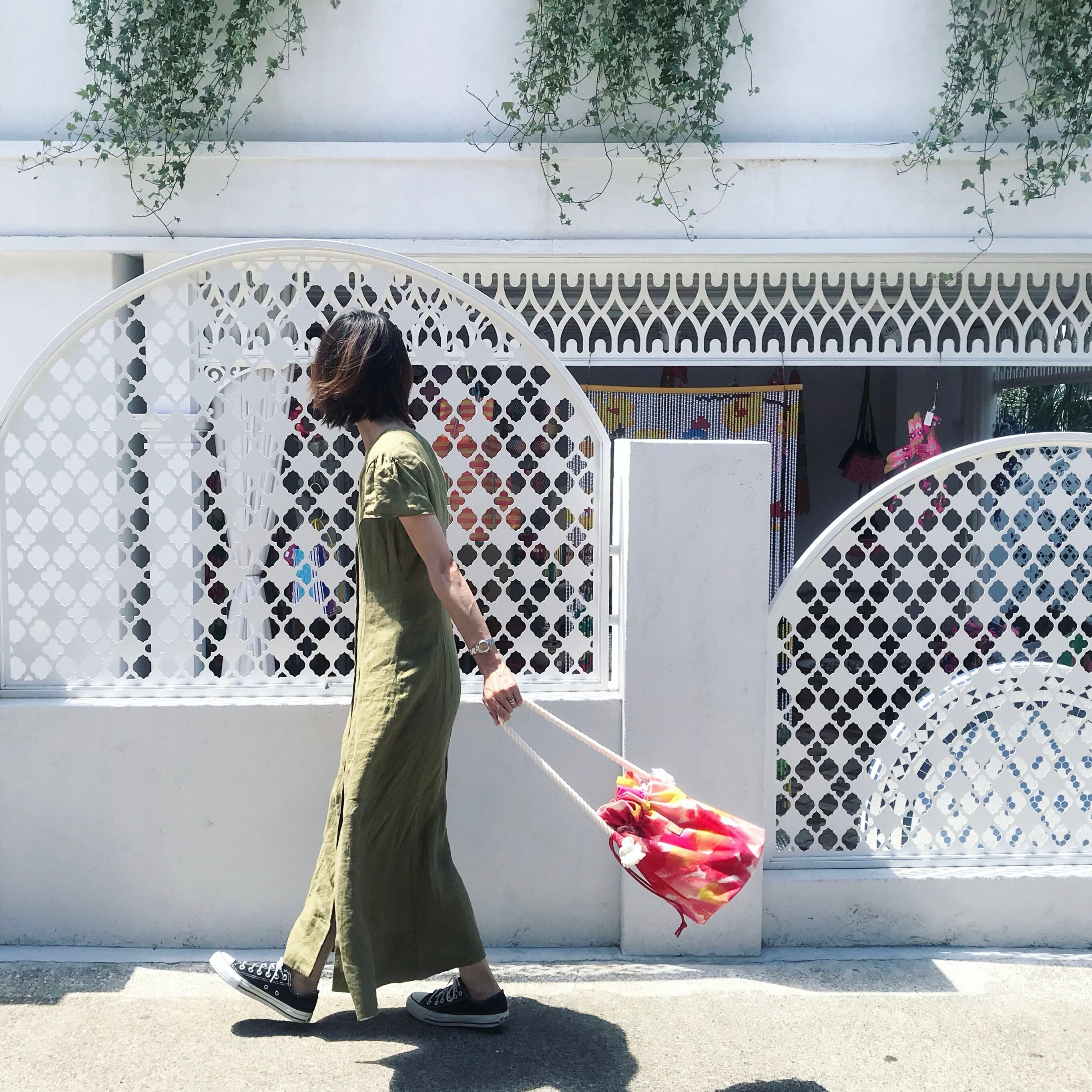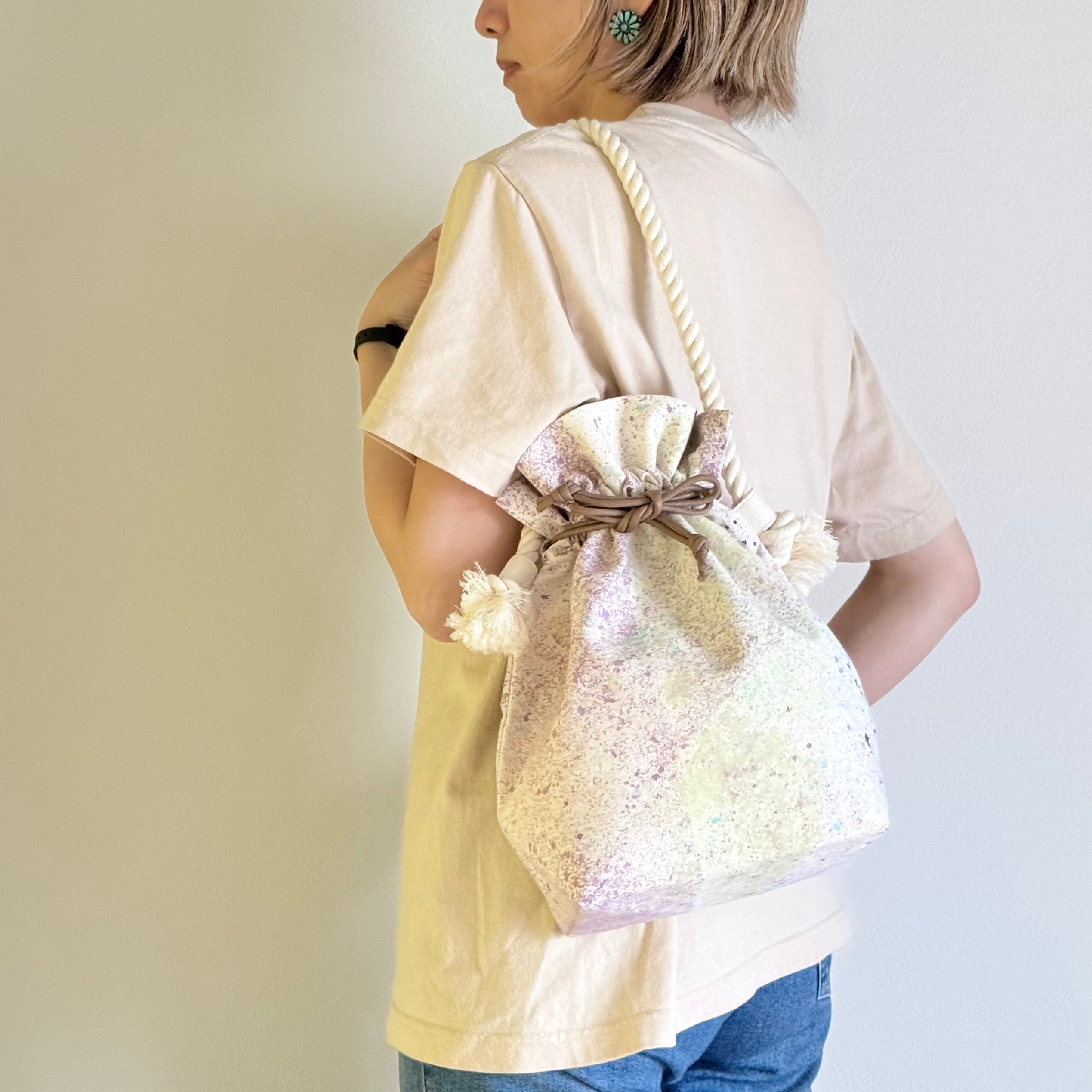 1枚1枚手染めで染色を施す、オリジナルテキスタイルのキャンバス巾着バッグです。