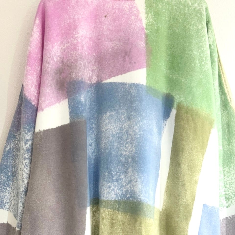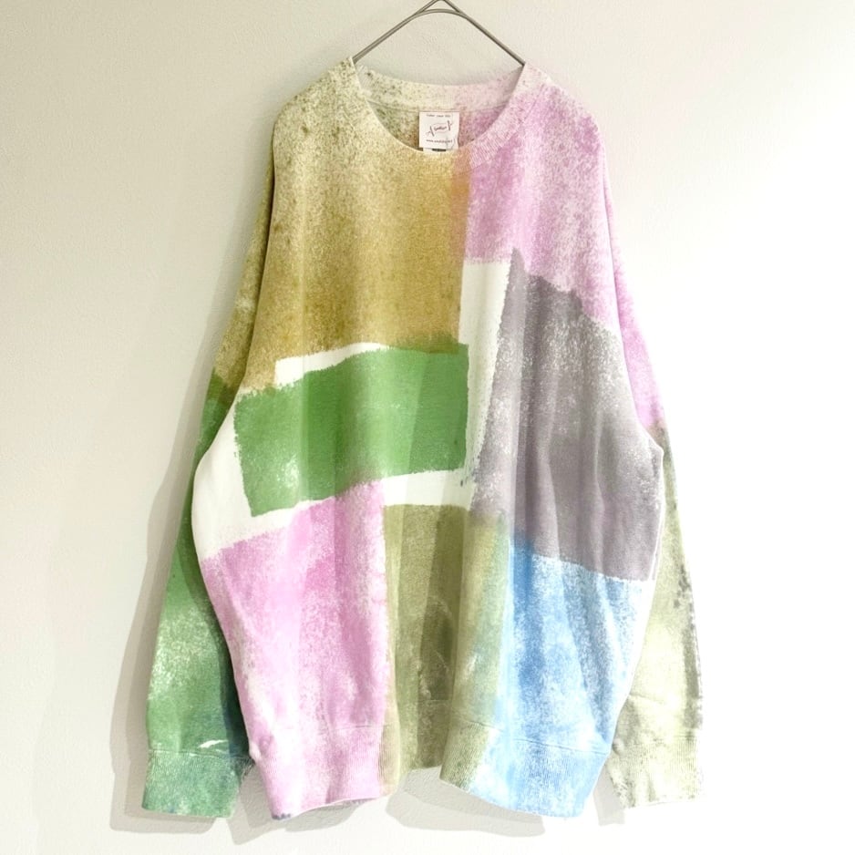 ゆったりサイズのスウェットを、1枚1枚型を使わずに染色している1点ものです。