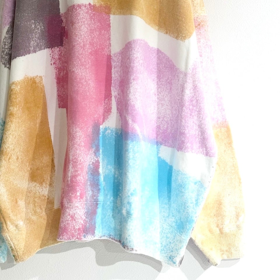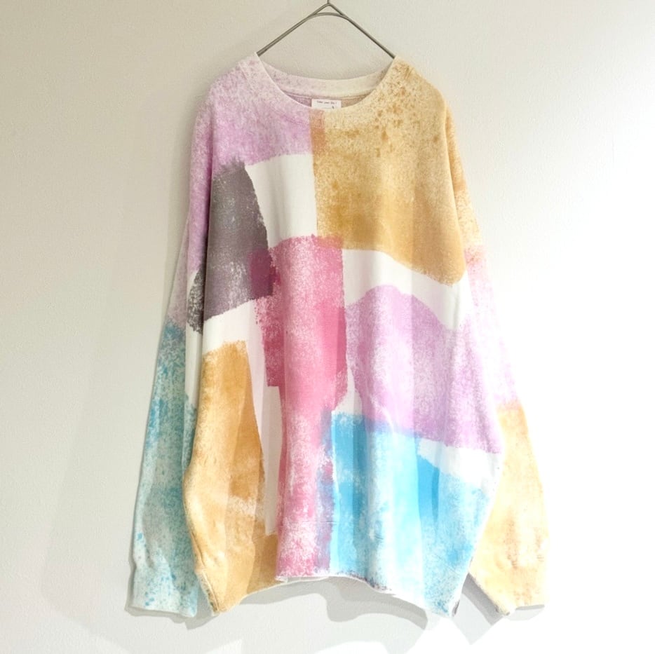 ゆったりサイズのスウェットを、1枚1枚型を使わずに染色している1点ものです。