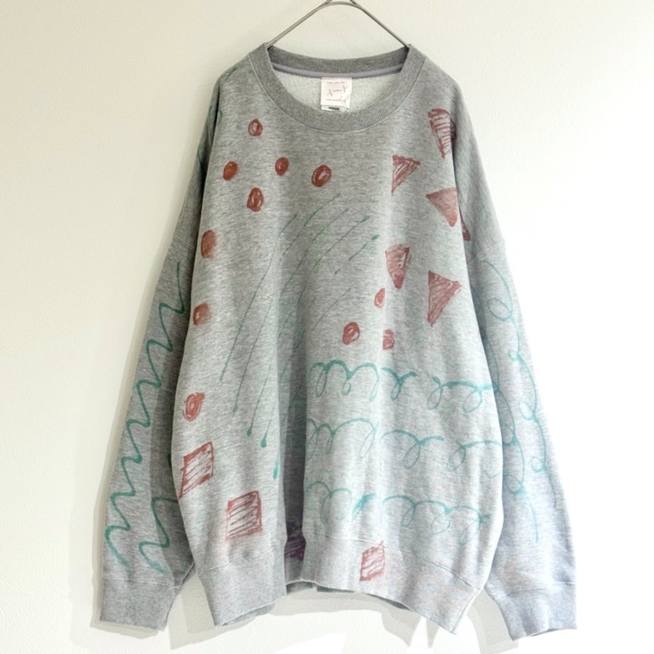 ゆったりサイズのスウェットを、1枚1枚型を使わずに染色している1点ものです。