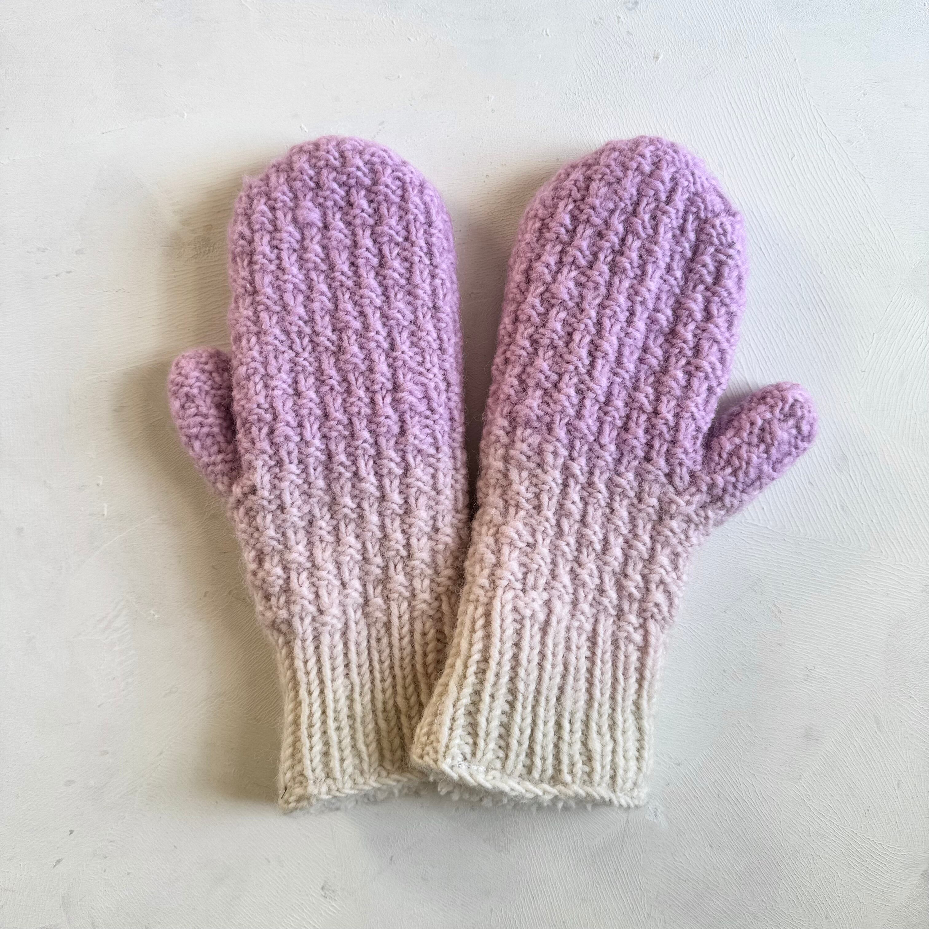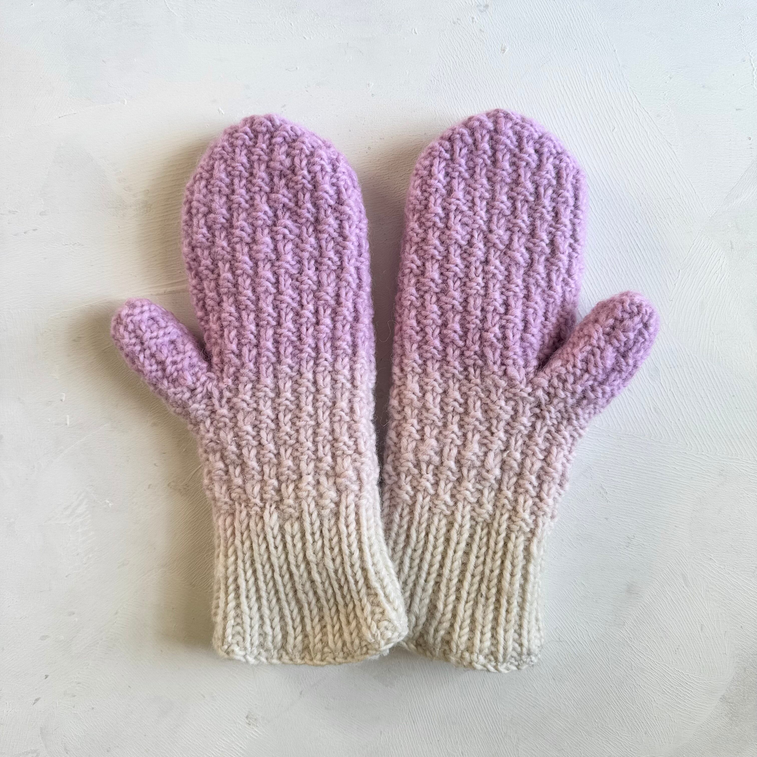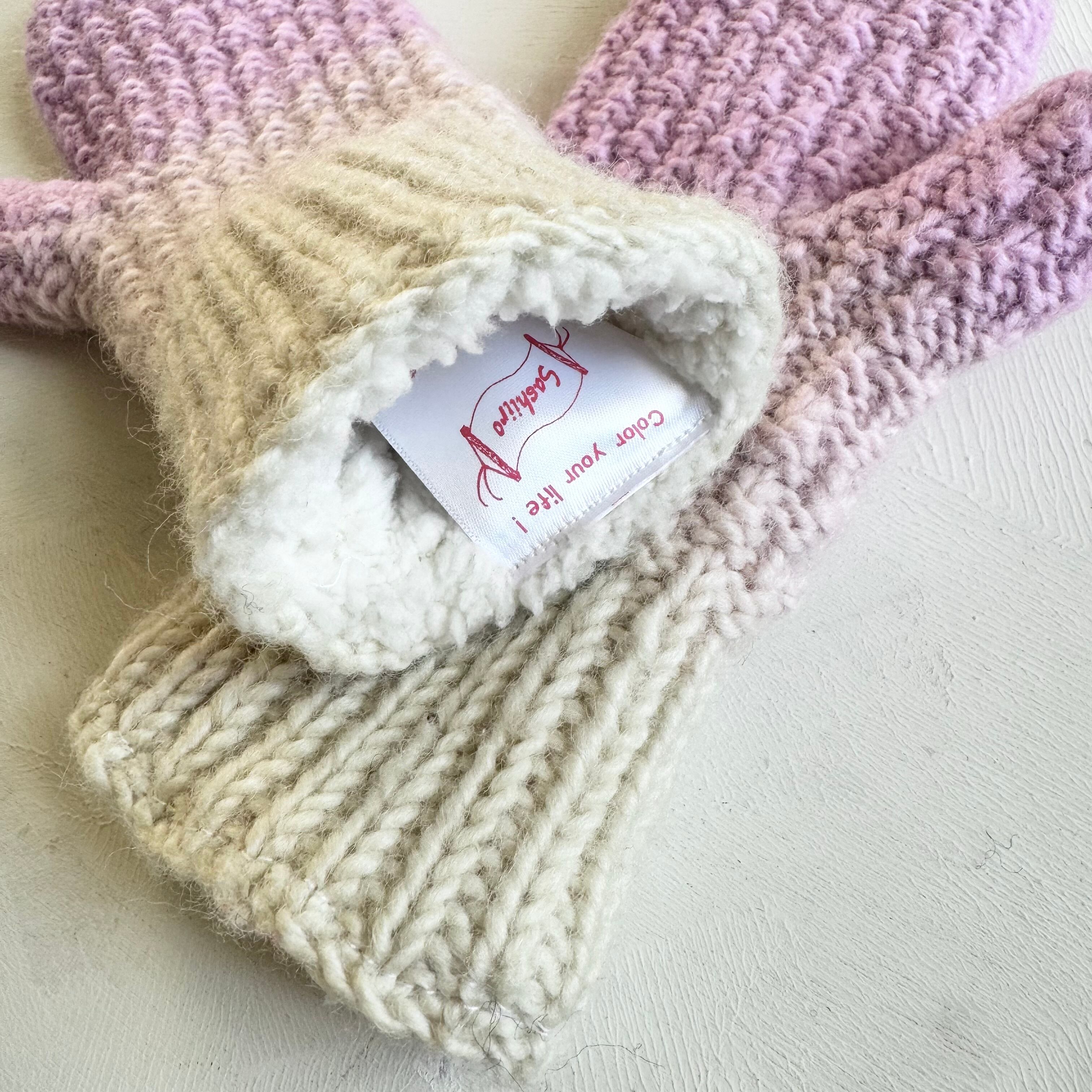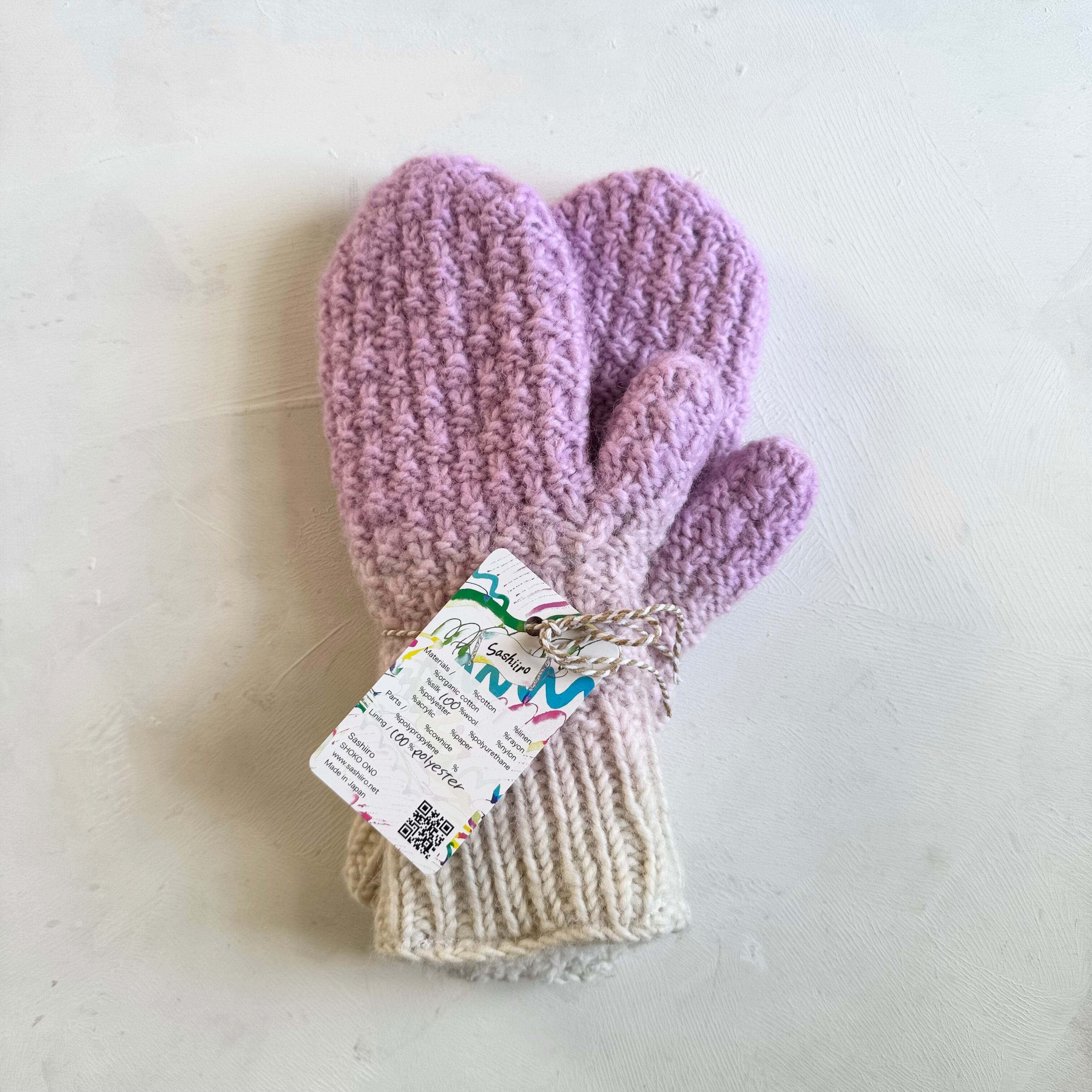 手染めのカラフルウールミトン もこもこピンクパープル×ホワイト