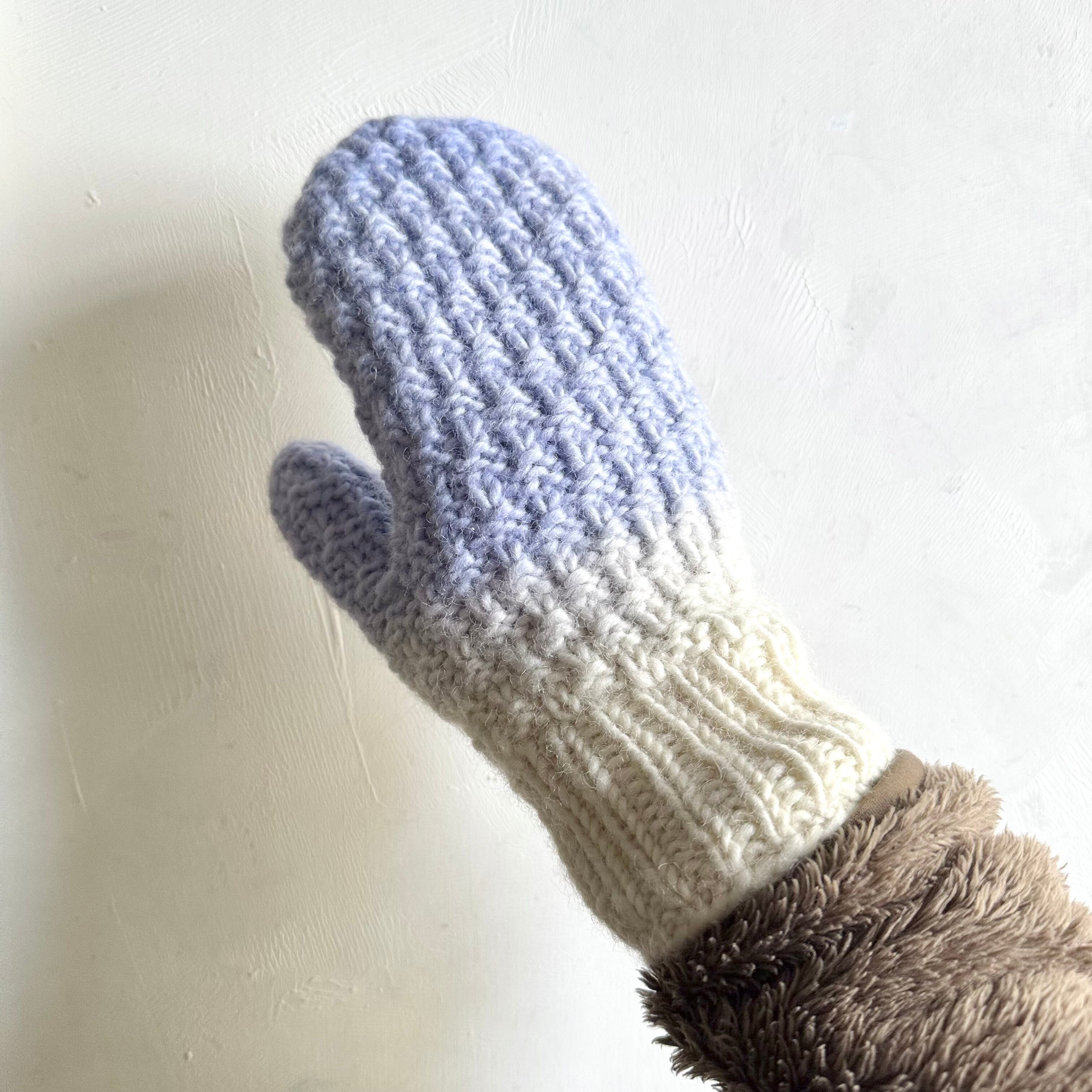 ゆったりしたミトンですので、外歩きの多い時や自転車など、真冬に大活躍です。