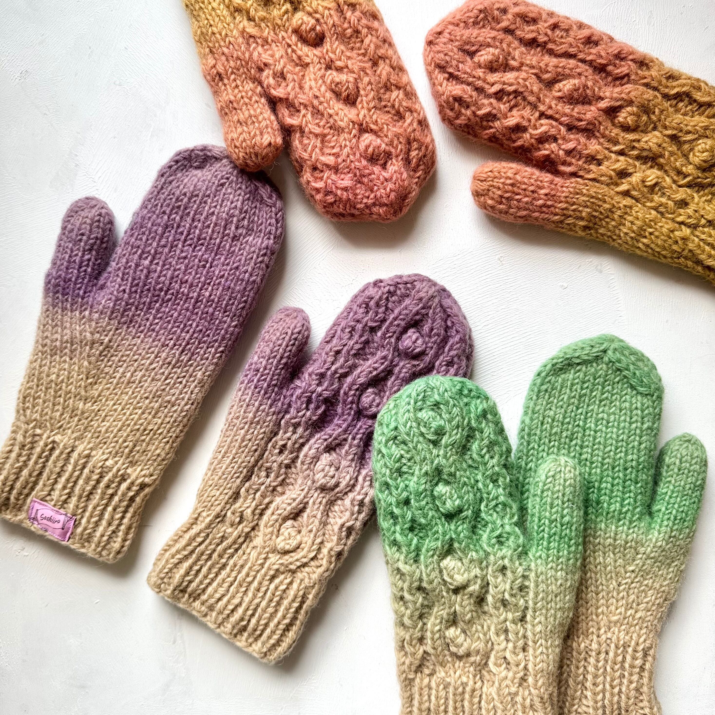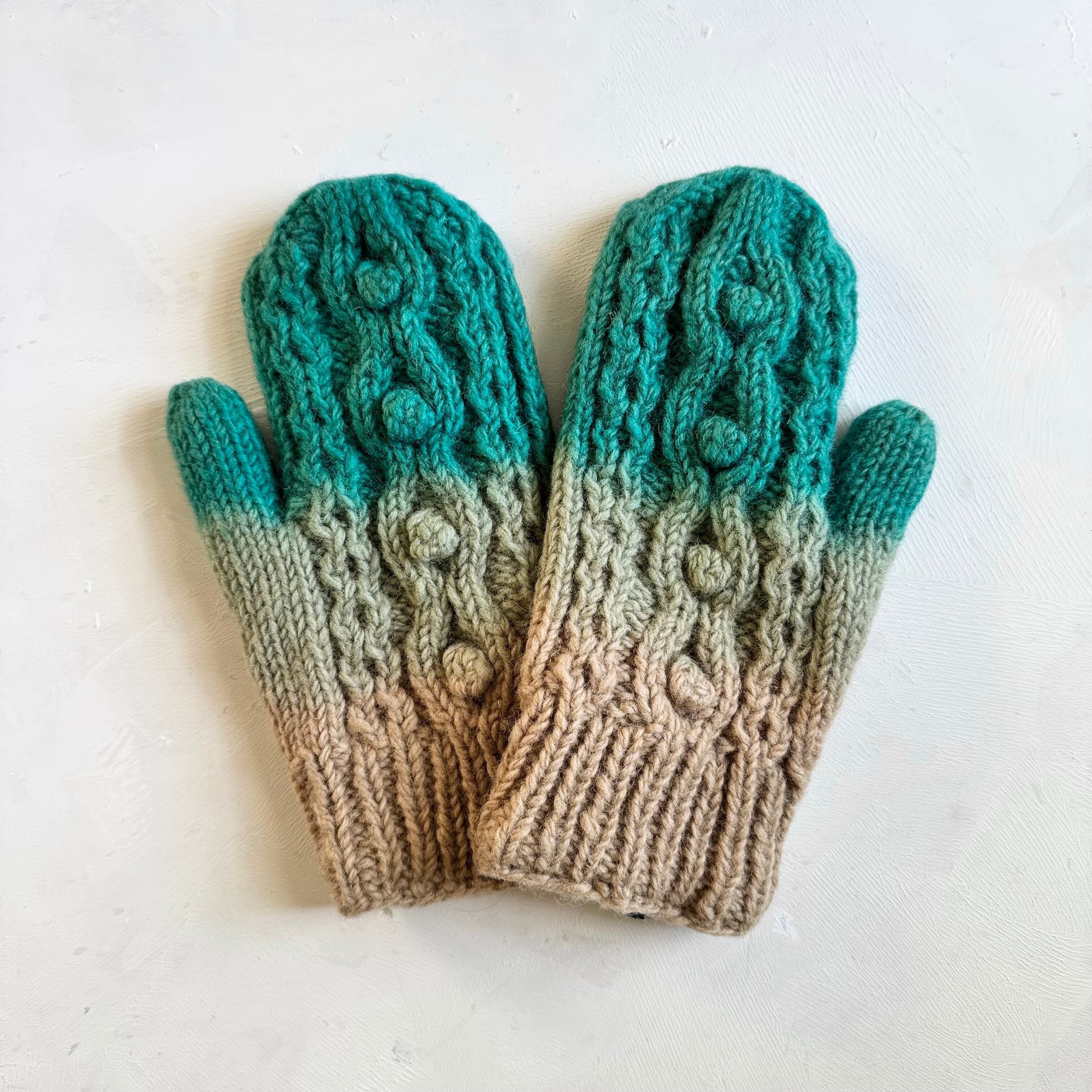 手染めのカラフルウールミトン もこもこグリーン×ベージュ