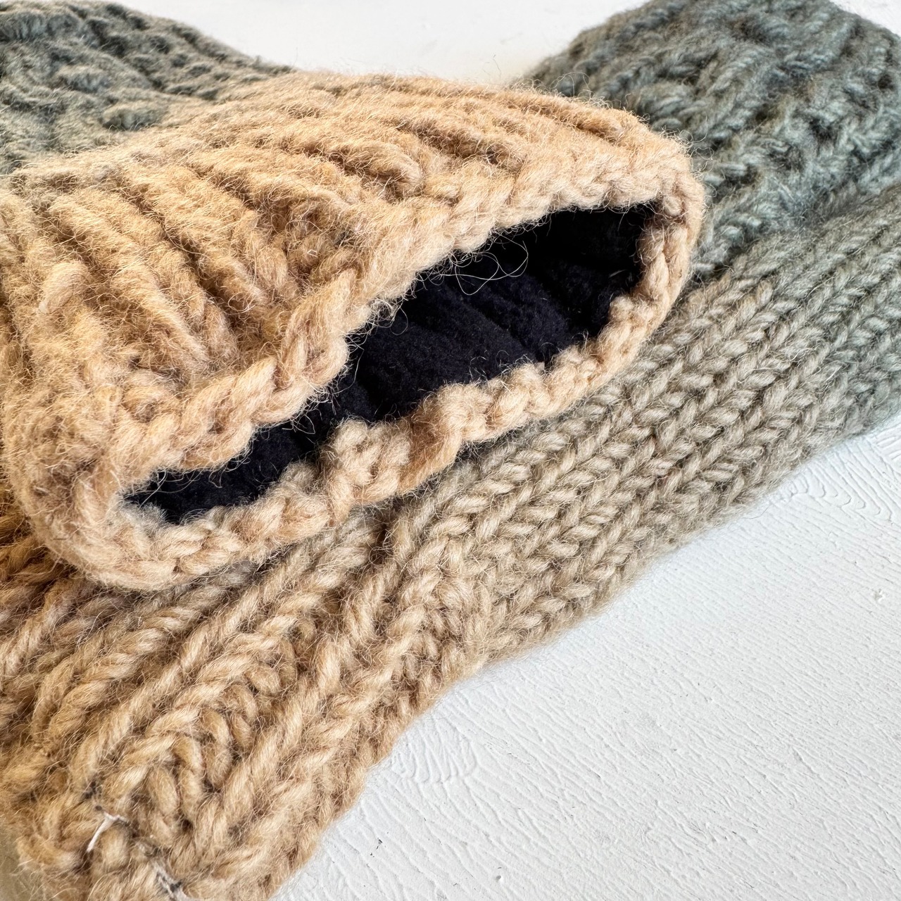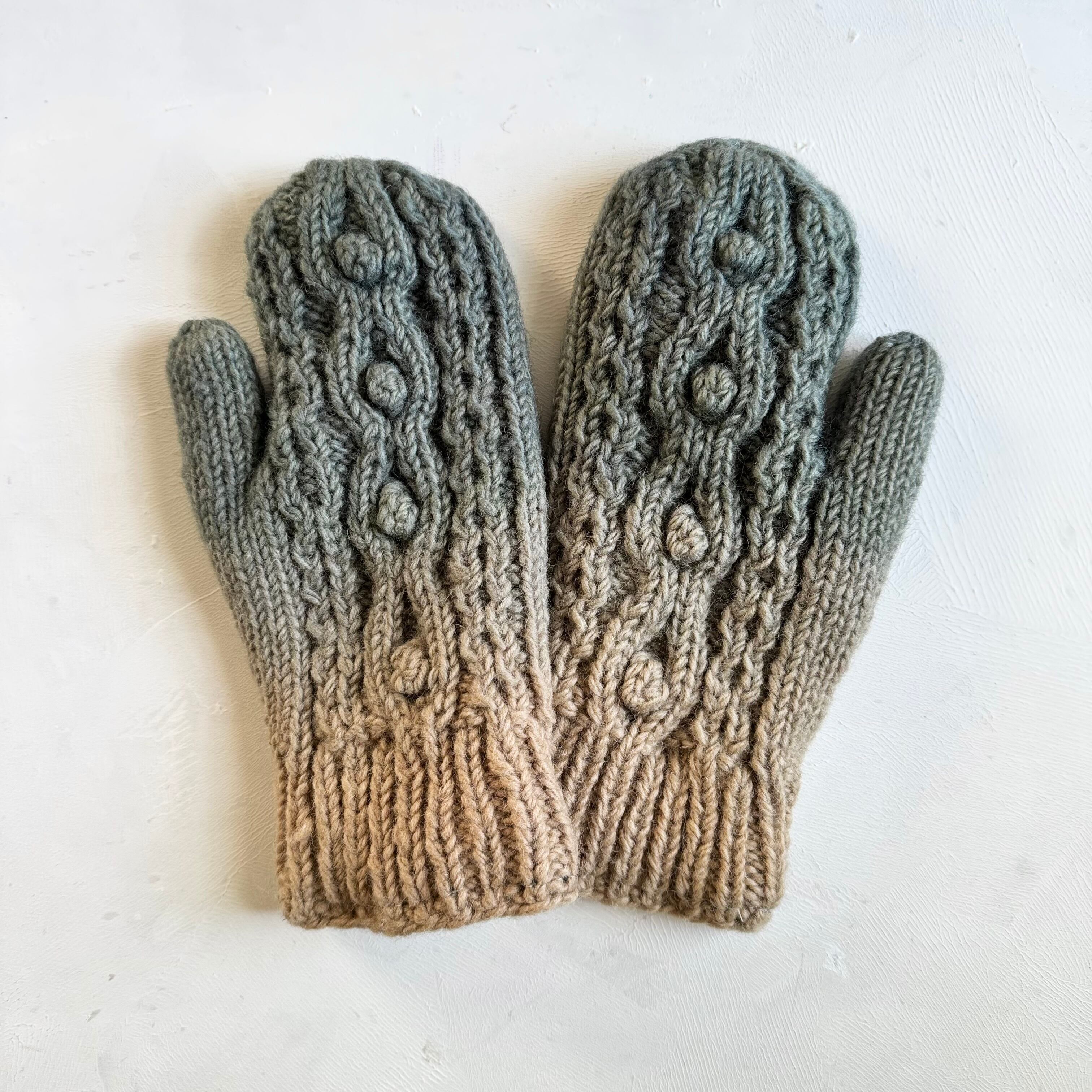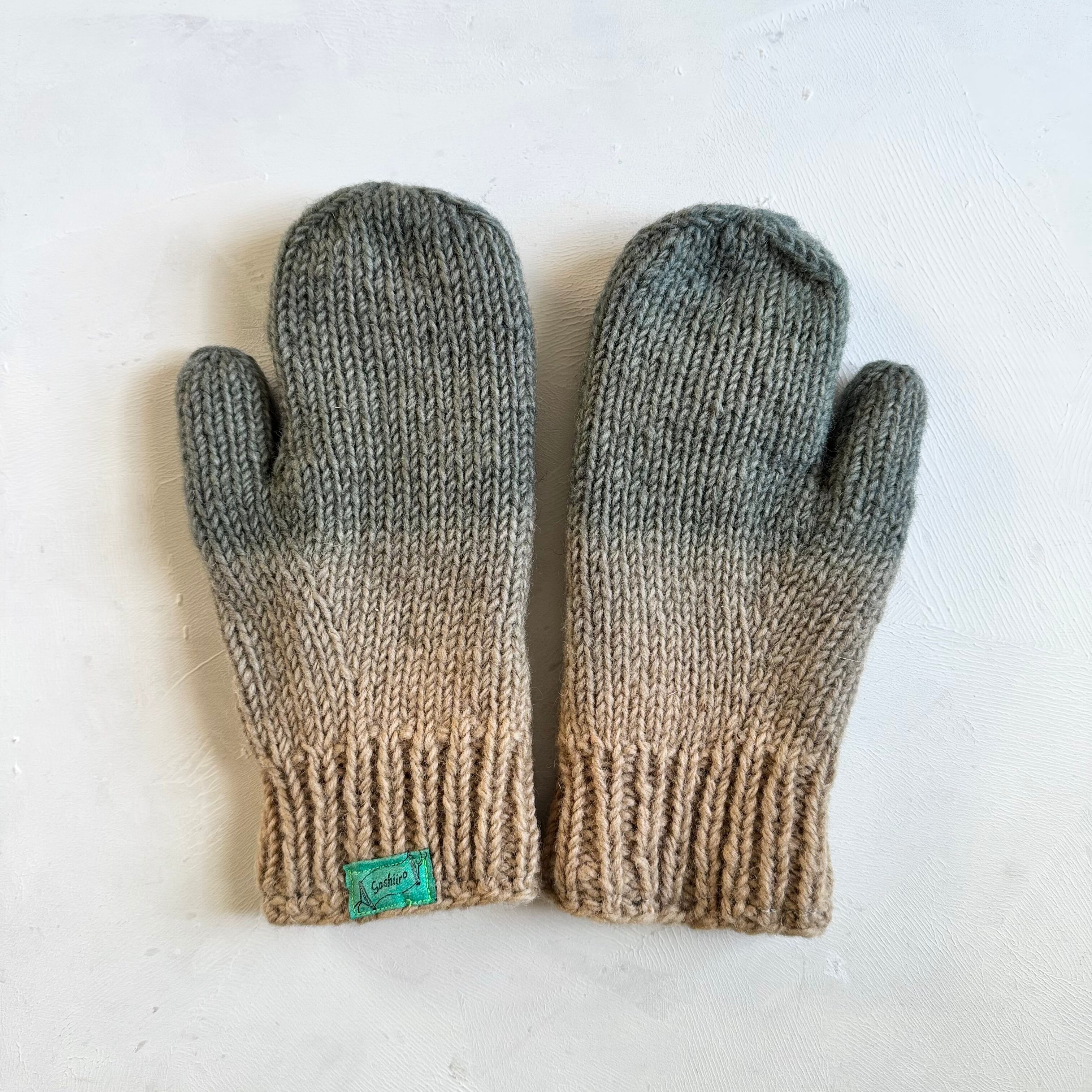 手染めのカラフルウールミトン もこもこグレー×ベージュ