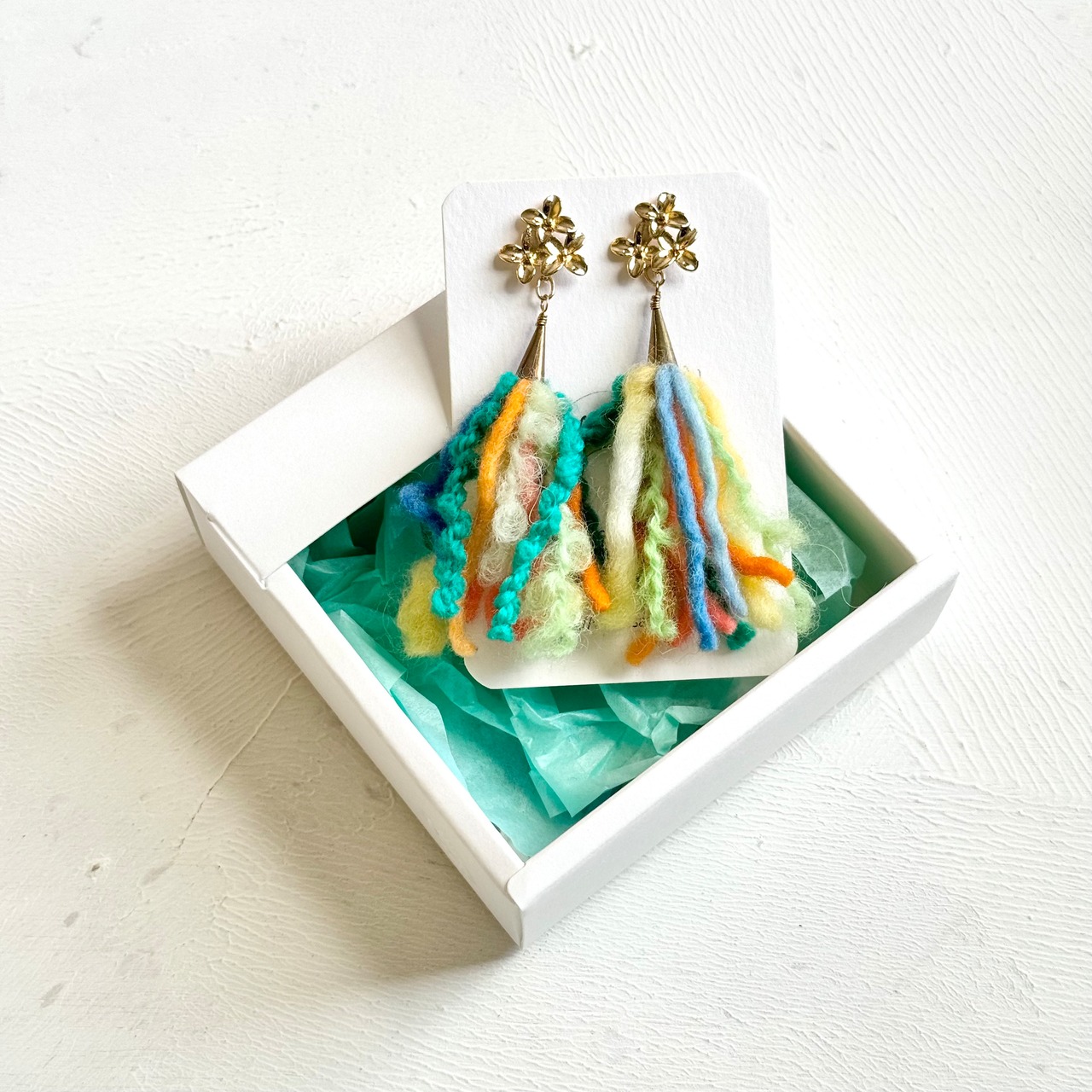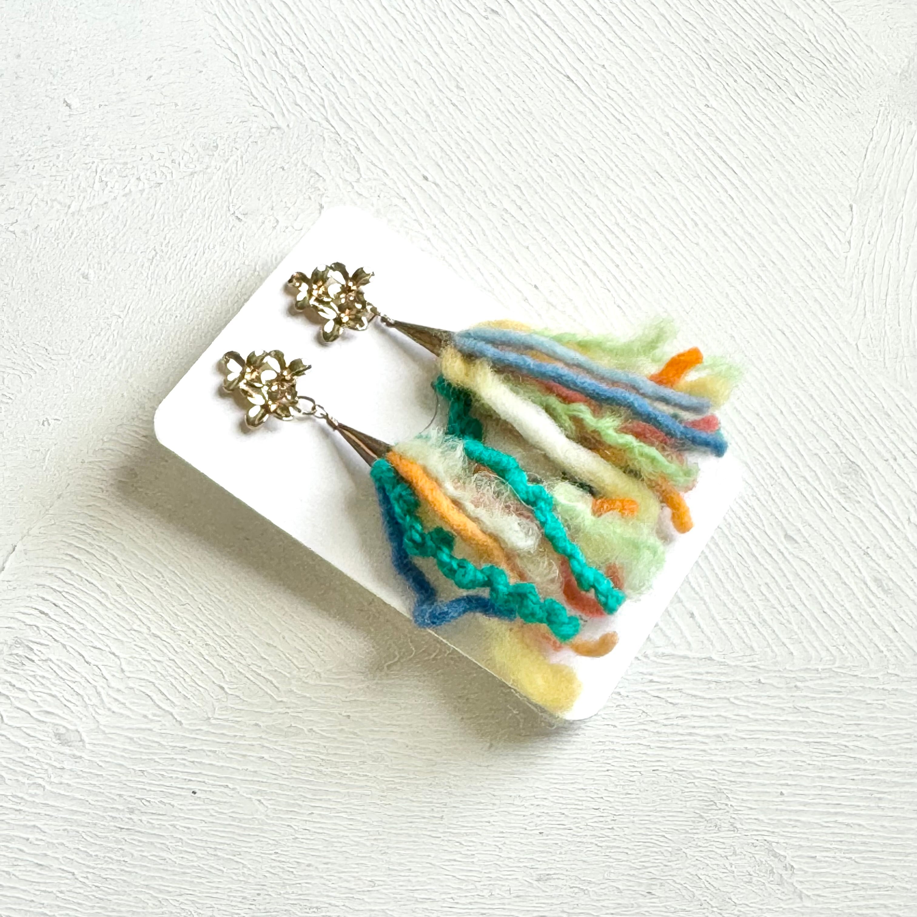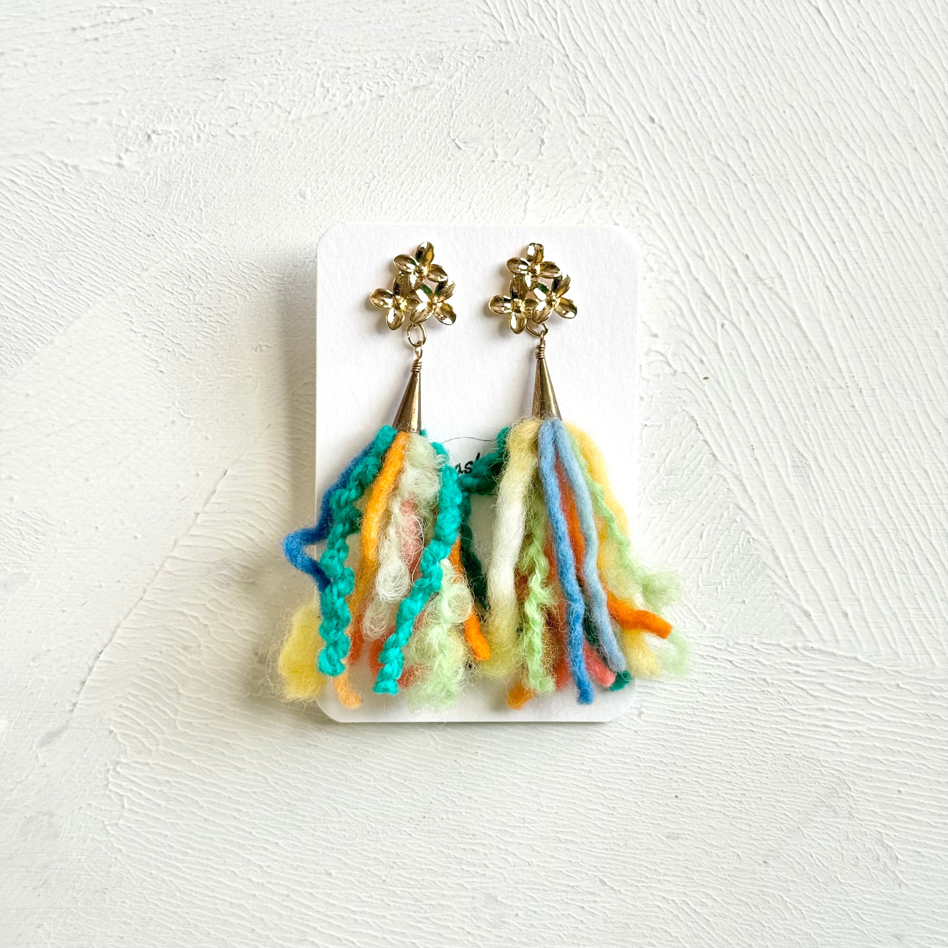 手染めウール糸のタッセルピアス / colorful