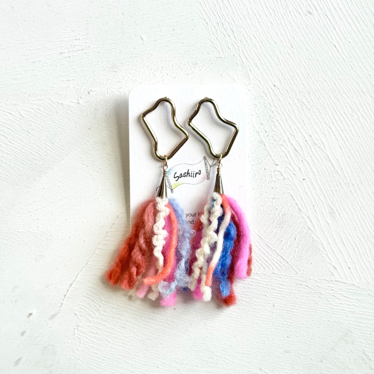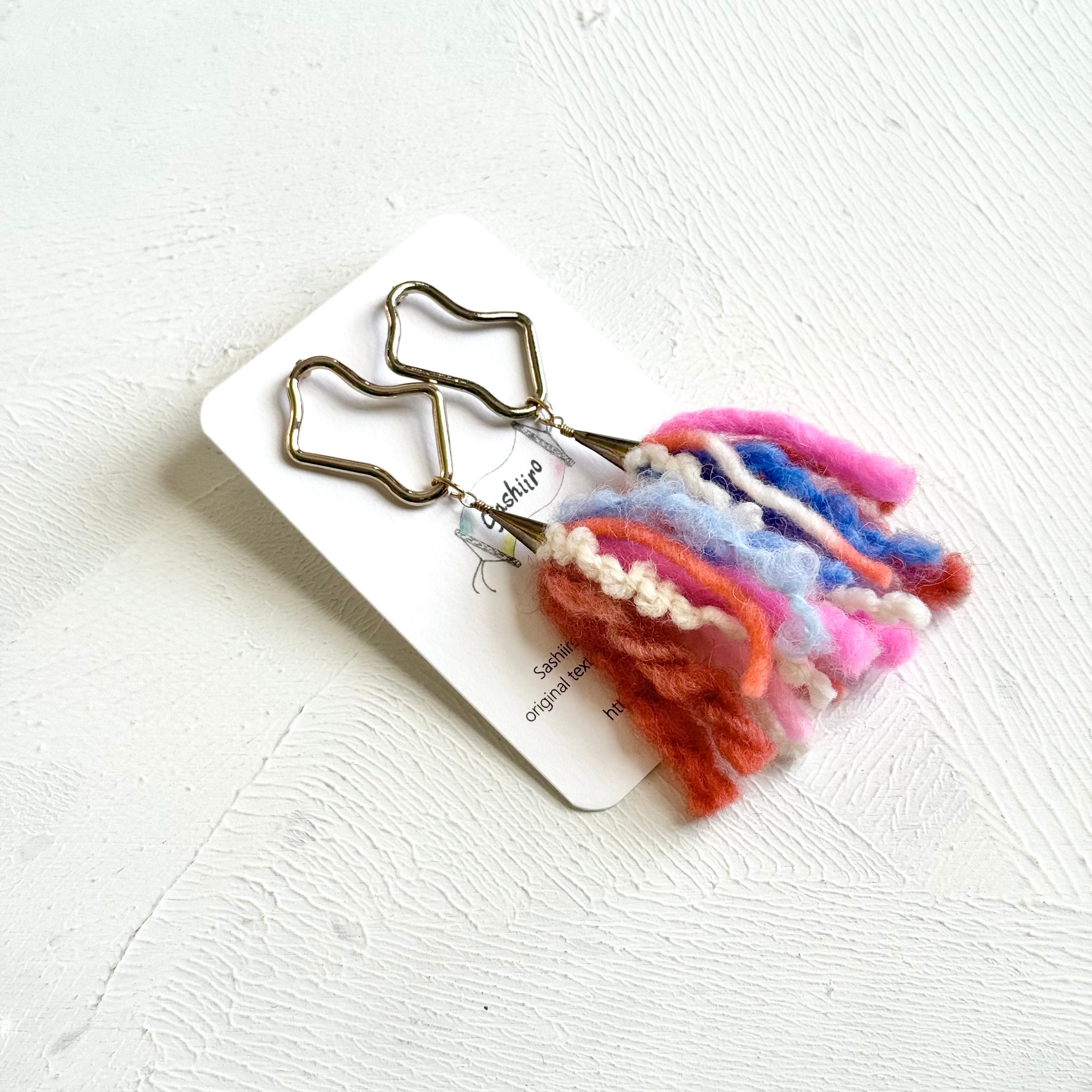 手染めウール糸のタッセルピアス / colorful