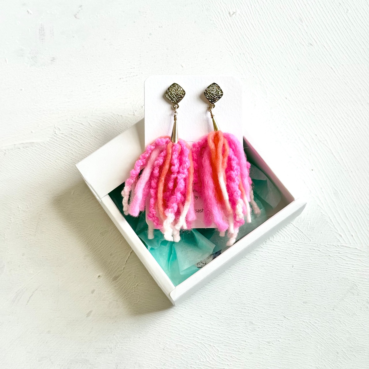 ウール糸のタッセルピアス