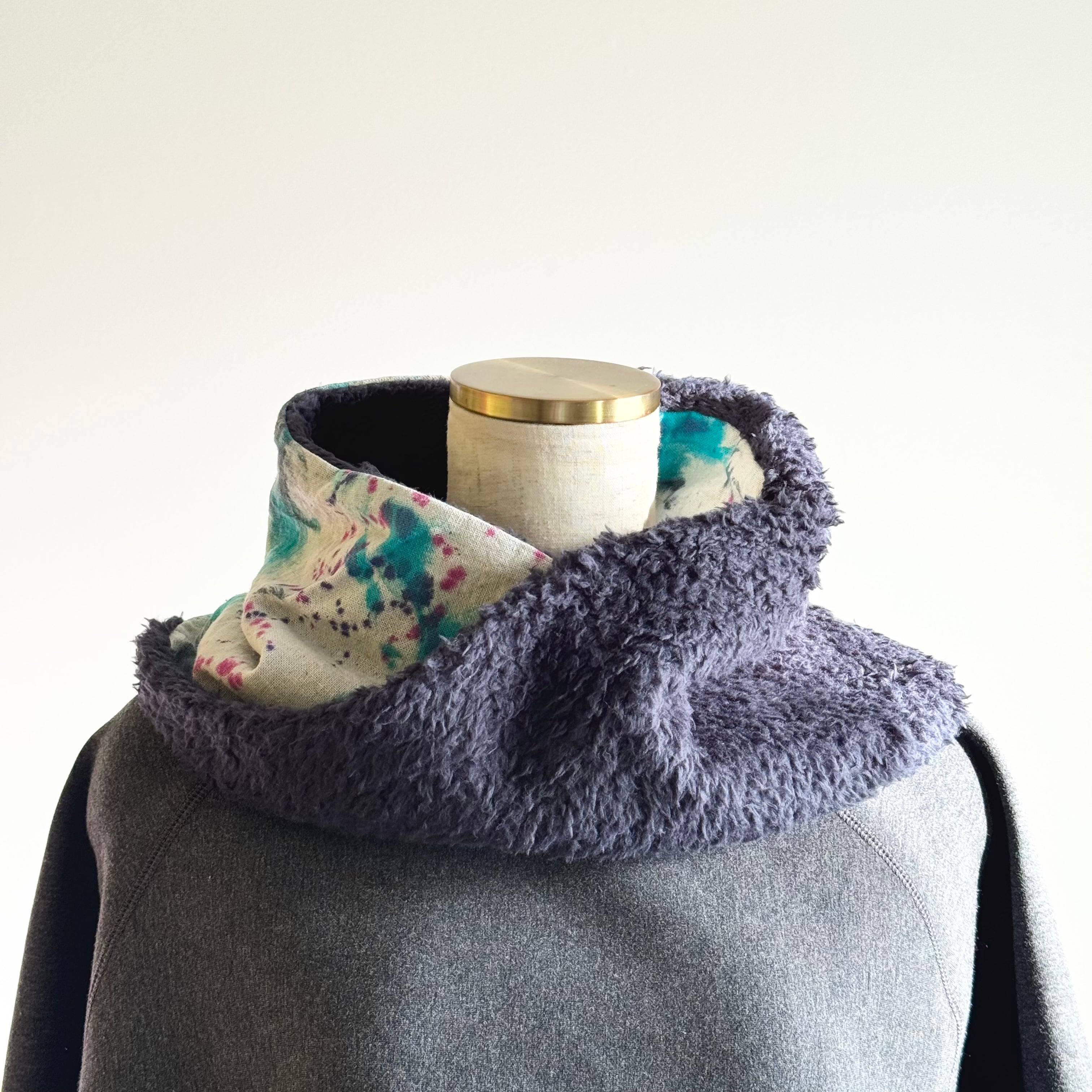 手染めとボアのネックウォーマー cross