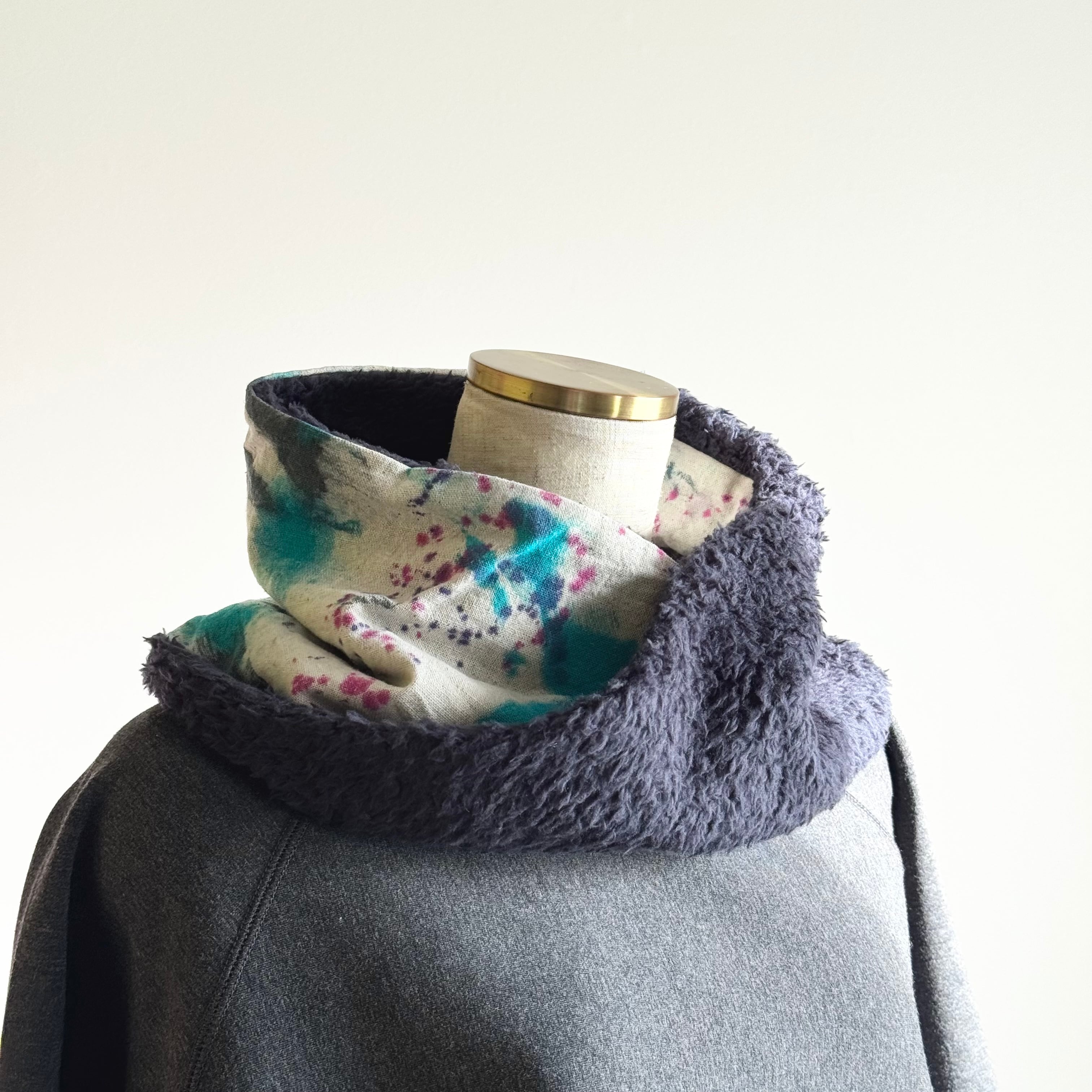 1枚1枚染色を施している、オリジナルのテキスタイルを使用したスヌードです。